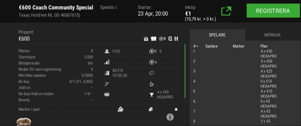 Hej pokervänner, Nu har vi glada nyheter! Varje fredag anordnar Svenska Spel Poker en exklusiv homegame-turnering för Pokercoach.se’s följare, i samarbete med våra vänner på Spelcash.se! Turneringen